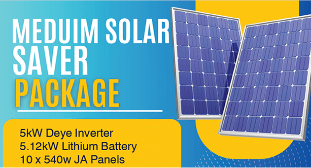 Welcome to the future of sustainable energy with our medium-sized solar system. Featuring a powerful 5kW Deye Inverter, paired with 10 high-efficiency 540W solar panels, and complemented by a reliable 5.12kW Lithium battery, this system is tailored for medium households seeking affordable yet robust solar solutions. Experience the reliability, efficiency, and affordability of clean energy with our innovative solar system today.